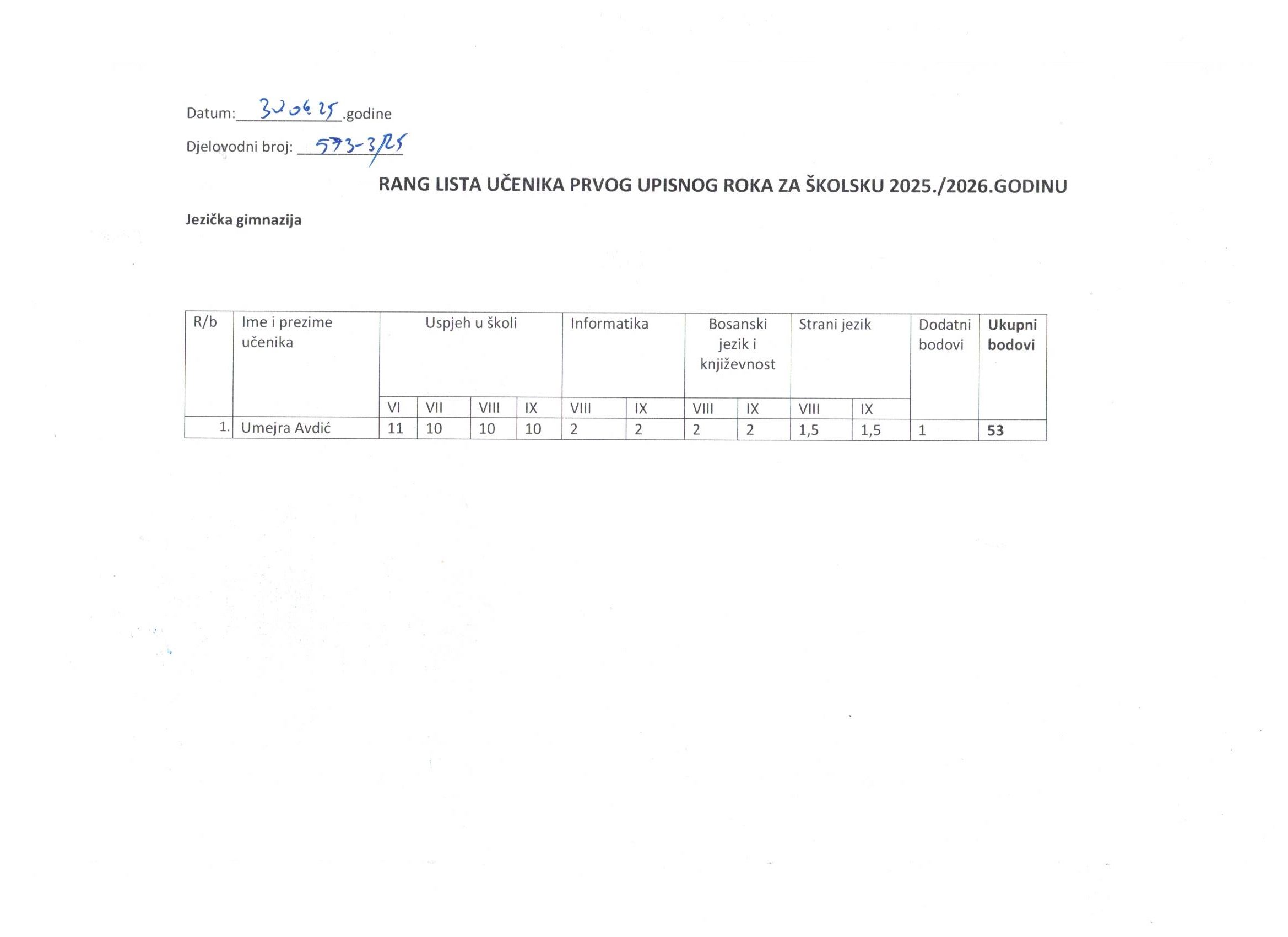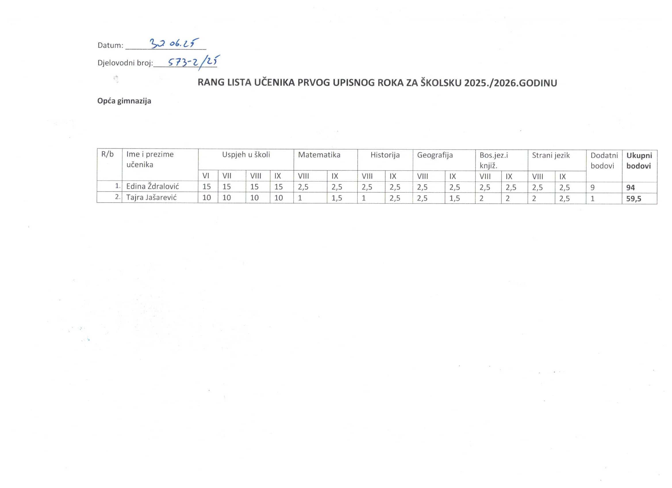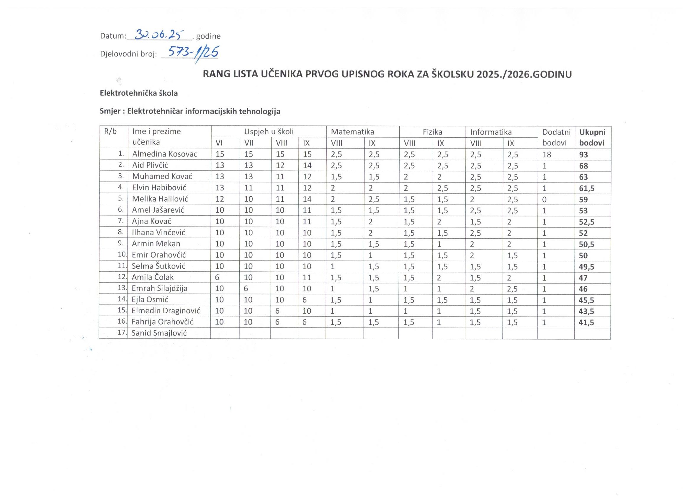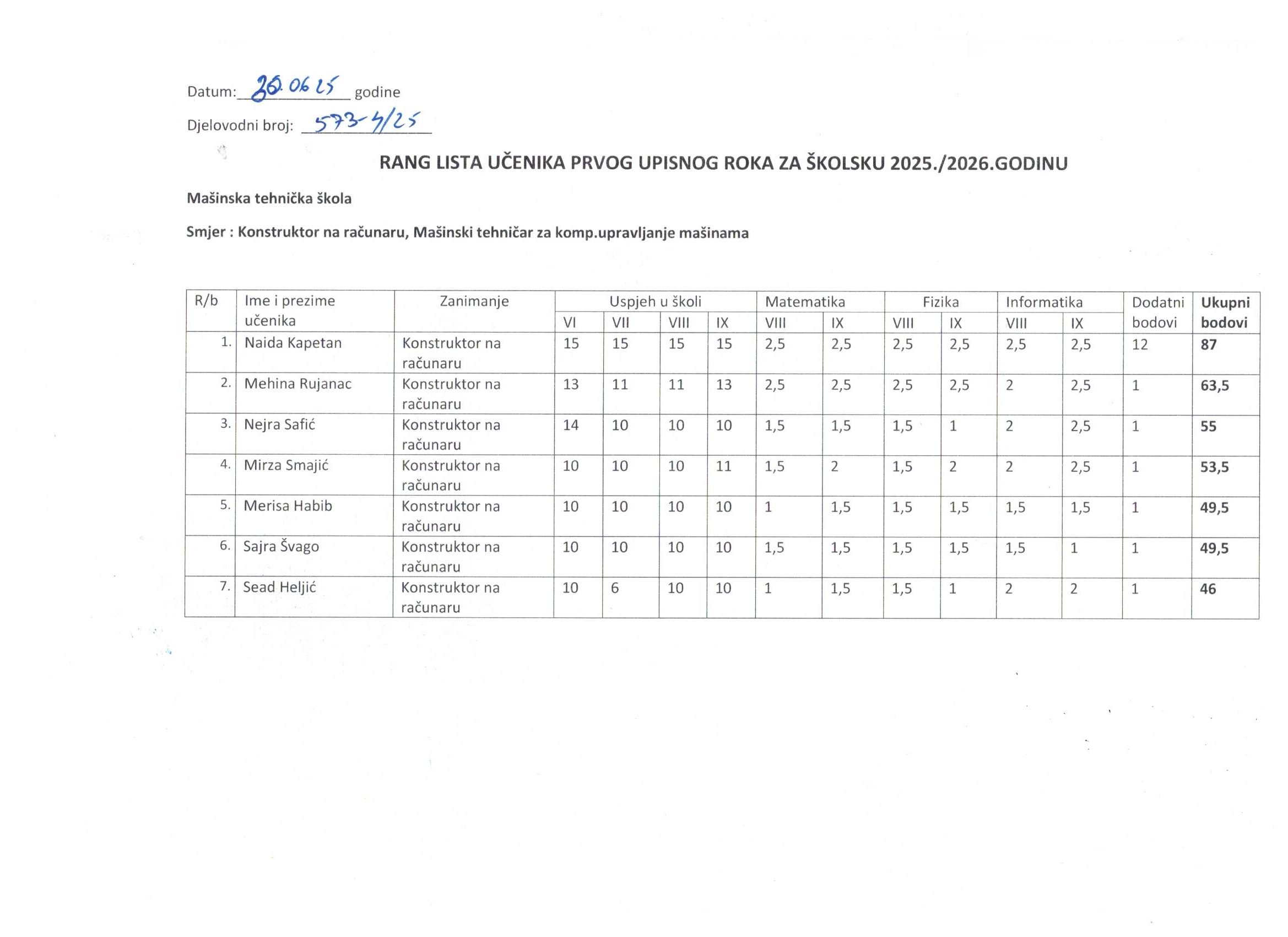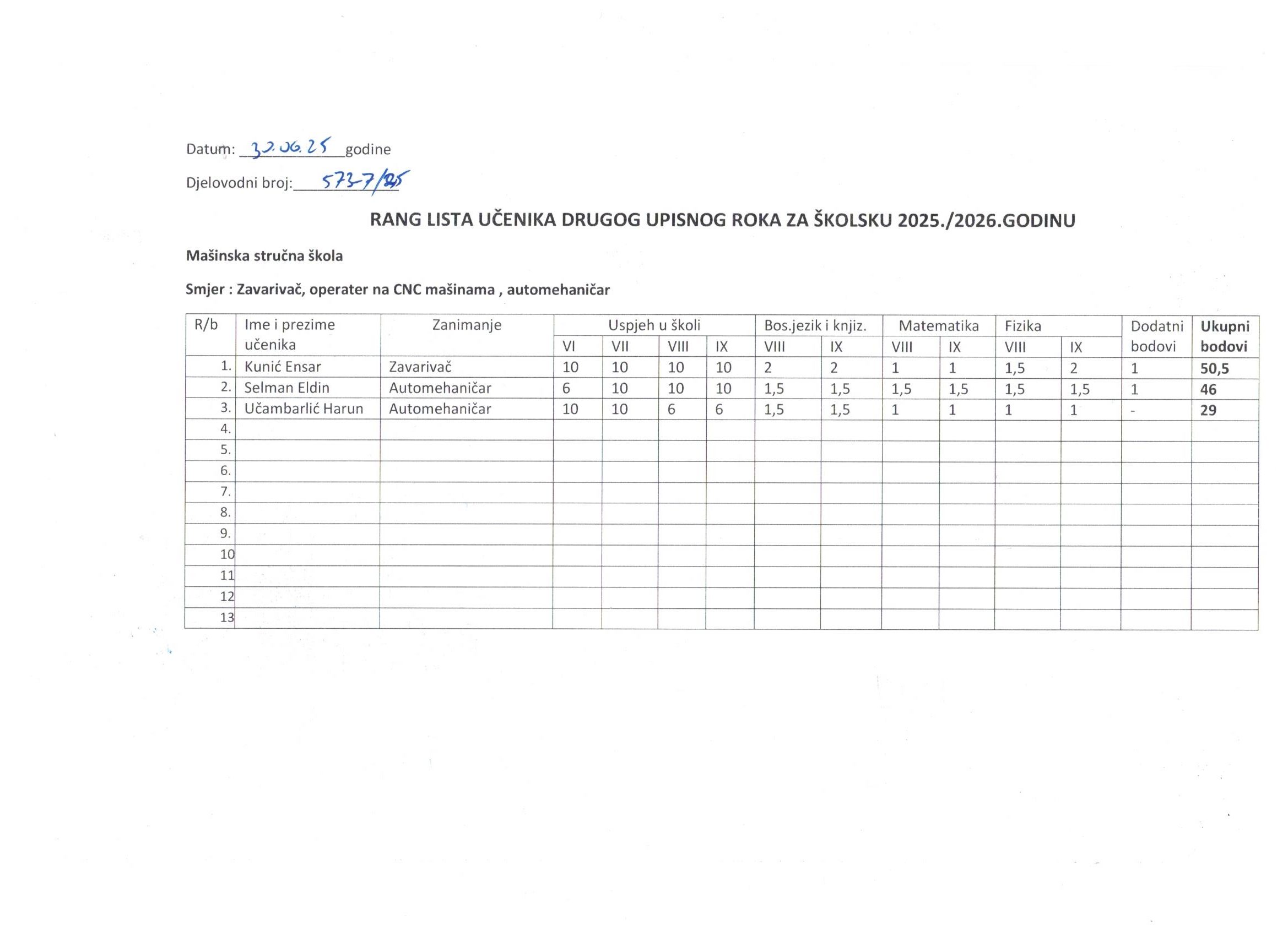 Obavijesti by mssdv June 30, 2025 0 Comments Spiskovi primljenih učenika u MSŠ Donji Vakuf nakon prvog upisnog roka za školsku 2025/2026. godinu mssdv